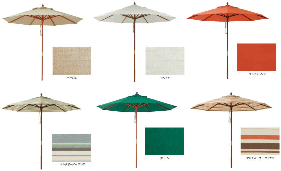サイズ φ2400×H2390支柱:φ35mm 重量 約6.5kg 材質 トップ飾り、ハブ、ランナー:プラスチック 生地:ポリエステル(撥水処理) ※支柱、骨は天然木を使用しているため、色や木目に個体差が生じます。