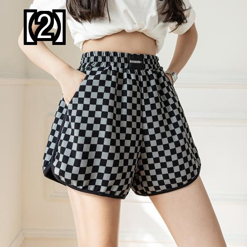 ショートパンツ おしゃれ ファッショナブル ショーツ ホットパンツ かわいい キュート 人気 ヒョウ柄 レディース スポーツパンツ レースアップ 伸縮性ウエスト ワイドレッグパンツ チェック柄 スリット カジュアル