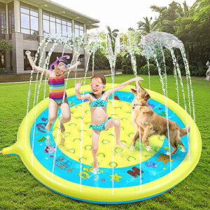 噴水マット プレイマット 噴水プール 170CM直径 ビニールプール おもちゃプレイマット 夏の日 子供用 水遊び 親子遊び 家庭用 アウトドア 芝生遊び 誕生日プレゼント