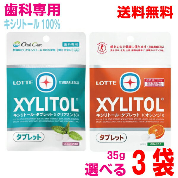 【選べる3袋】【メール便送料無料】ロッテ キシリトールタブレットクリアミント味 オレンジ味 35g×3袋 特定保健用食品