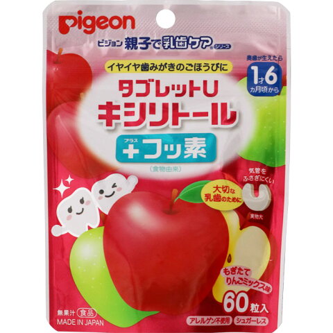 ピジョン 親子で乳歯ケア タブレットU キシリトール+フッ素 りんごミックス味 60粒