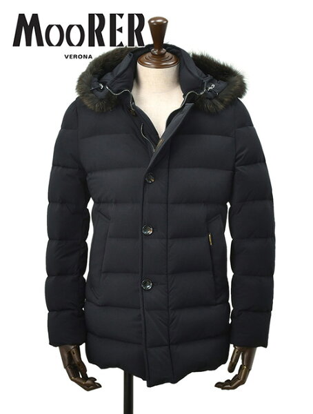 TOP > ムーレー  MooRER 国内正規品 メンズ 軽量ダウンジャケット MORESCO-KN モレスコ ストレッチマットナイロン ネイビー ラクーンファー付きフード着脱式 ACQUAライン撥水 軽量 でらでら 公式ブランド