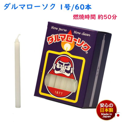 ろうそく ダルマ 1号 / 60本 約50分 約225g 東海製蝋 104-03 日本製 白い 蝋燭 ローソク キャンドル 仏壇 お供え物 毎日 だるま お供え 御供 寺院 お彼岸 丸い 神棚 仏壇用 葬儀
