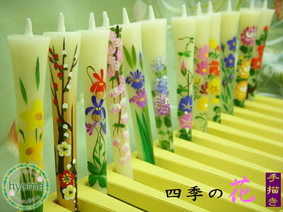 【メール便送料無料】手描き 絵入りろうそく 3号絵ろうそく 四季の花(12本入)お盆/お彼岸/月命日の蝋燭 インテリアローソク/植物ローソク 仏花/お供え花ろうそく