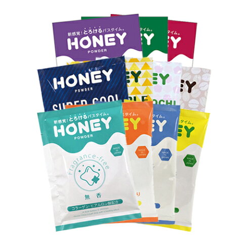 商品詳細 製品名 ハニーパウダー(HONEY POWDER) 内容量 30g (1回分) 香り 無香 イランイランオレンジの香り ミルクの香り ゆずの香り さくらもちの香り コーヒーの香り スーパークール(夏季限定) パイナップルの香り(夏季限定) 商品説明 お風呂がまるごとローションだったら…そんな願いをカタチにした「HONEY」。
