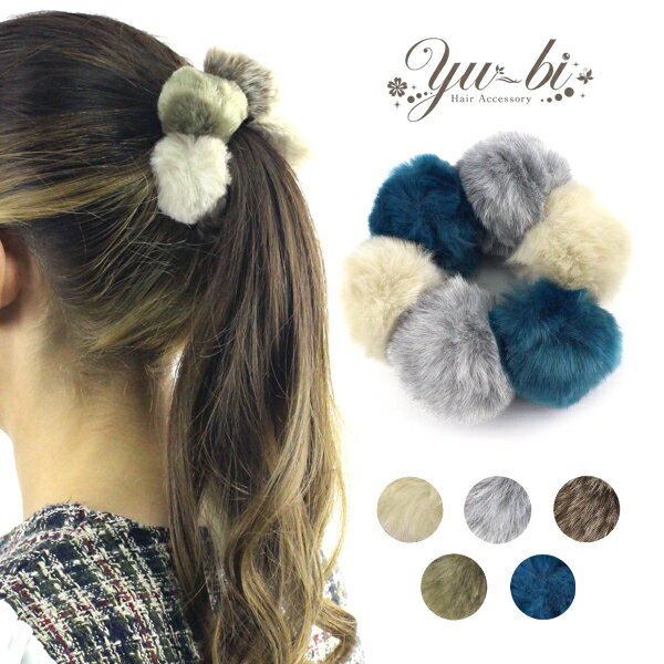 【クーポン発行中】【ゆうパケットOK】ヘアゴム/フェイクファー ふわふわ ポンポン 大きめ g144☆キャメル/グレー/こげ茶/カーキ/藍色 ヘアポニー ヘアアクセサリー 髪飾りシュシュ ヘアーアクセサリー 秋冬【あす楽対応】